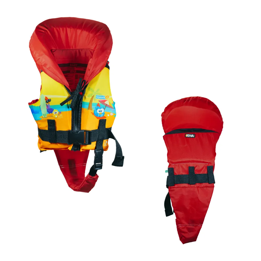 Uso: Para uso em águas calmas e abrigadas. Piscinas, lagos, beira-mar, etc. Tamanhos: Indicado para crianças de 1 a 5 anos pesando até 25Kg. Material: Fabricado com tecido poliéster fino, e espuma de polietileno de célula fechada.