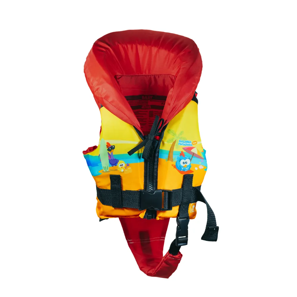 O colete salva-vidas ATIVA BABY GALINHA PINTADINHA® é um colete infantil classe V homologado pela Marinha do Brasil e projetado para manter uma criança de até 25kg flutuando na linha da água. Permite a livre movimentação de braços e pernas e garante muito mais segurança para a criança. Recomendado para crianças menores, com peso de até 25kg e que já possuem consciência corporal, ou seja, que já ficam com a coluna ereta. Esse modelo conta com um sistema de desviamento, em que a disparidade de espuma no peito vira a criança para cima, caso ela esteja com o rosto virado para baixo. Além disso, sua gola mantém a cabeça da criança para fora da água. Desenvolvido especialmente para crianças, o colete permite movimentos livres sem risco de furar ou sair dos braços. Desenvolvido e fabricado conforme a NORMAM 321/DPC Homologação n.º 016/2012.