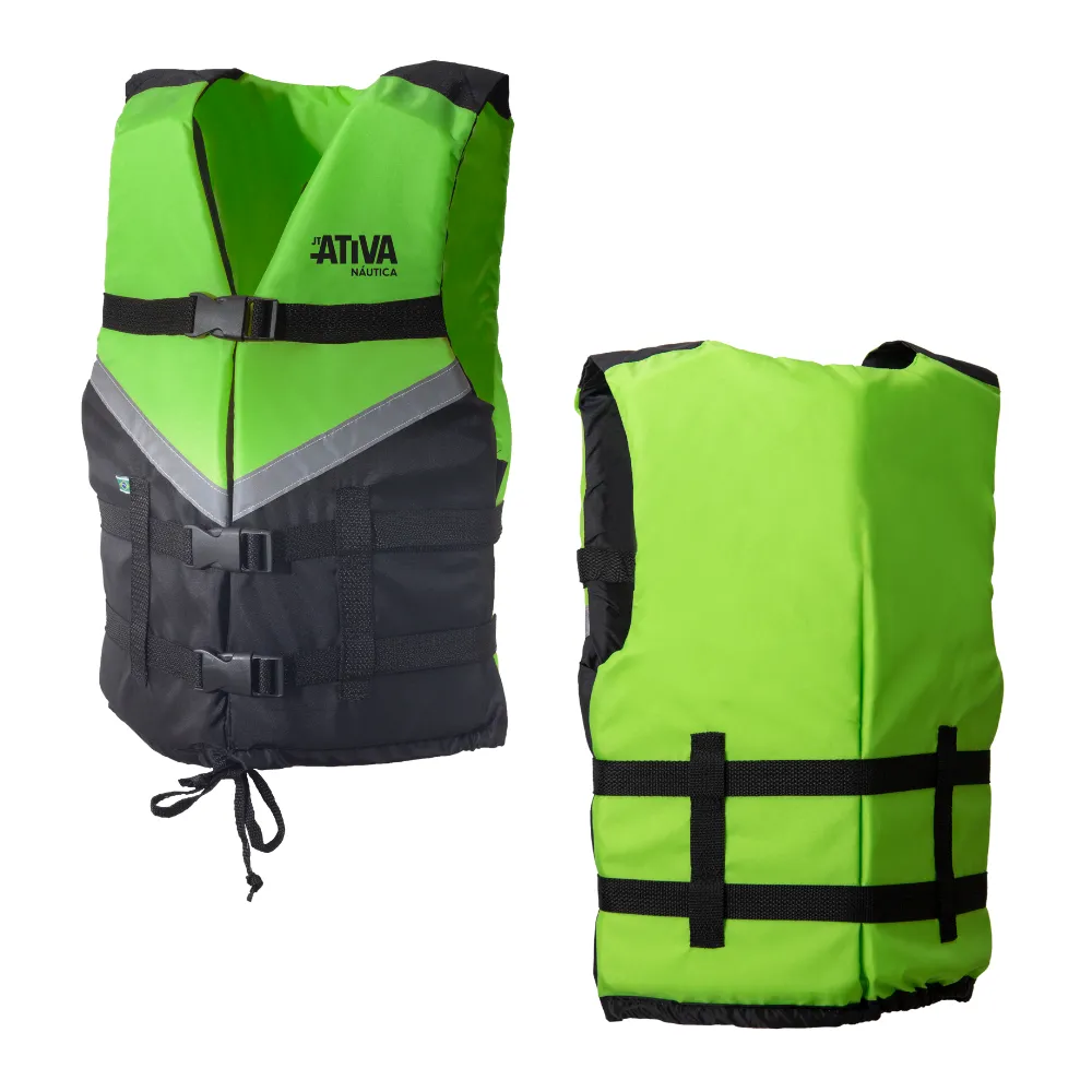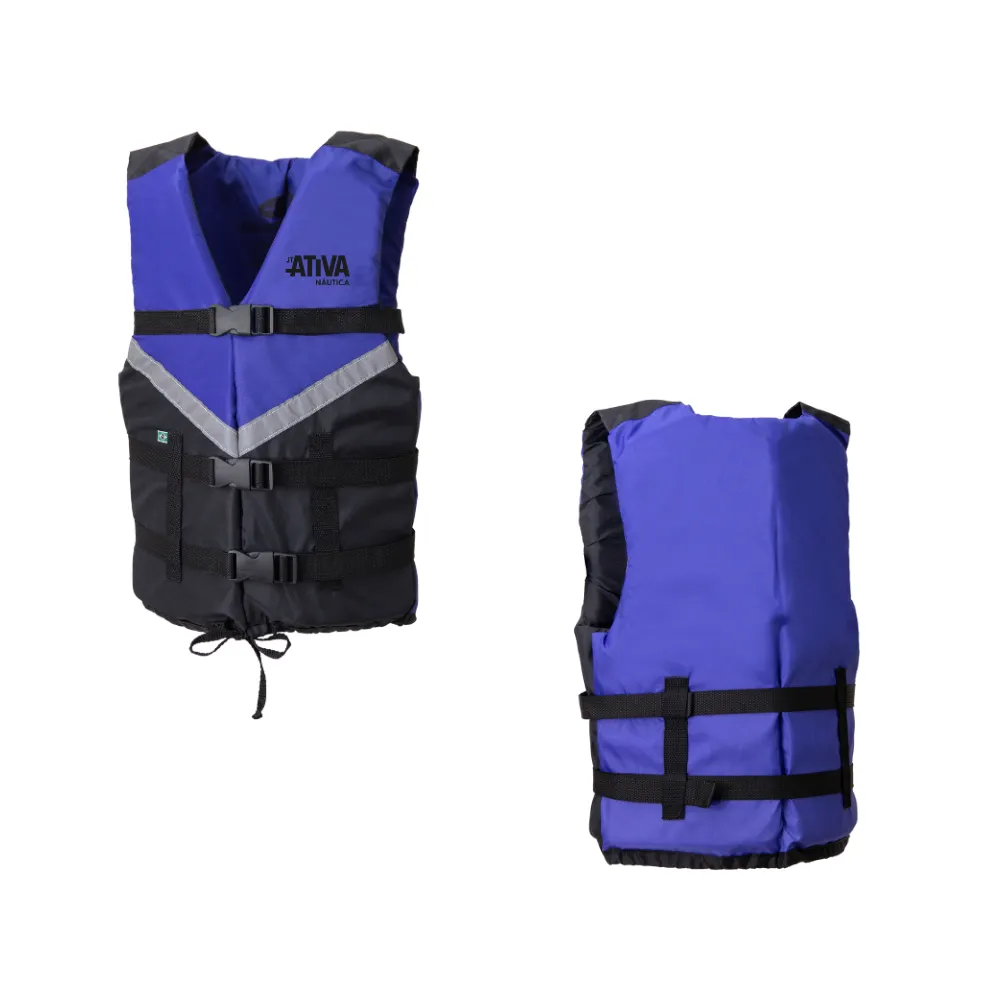 Informações e cuidados de uso na parte interna do colete.