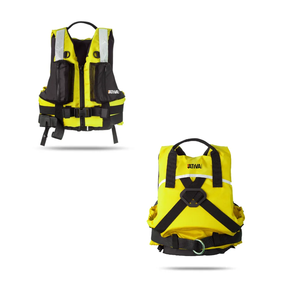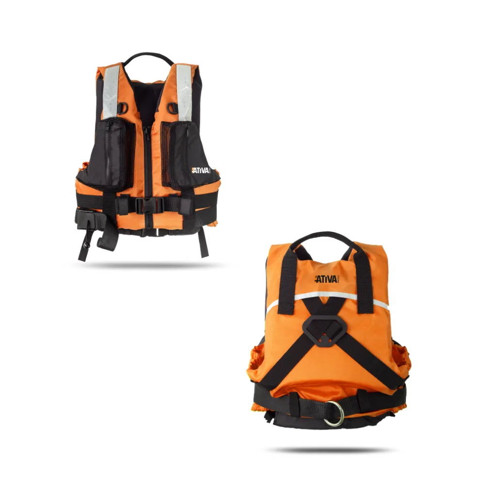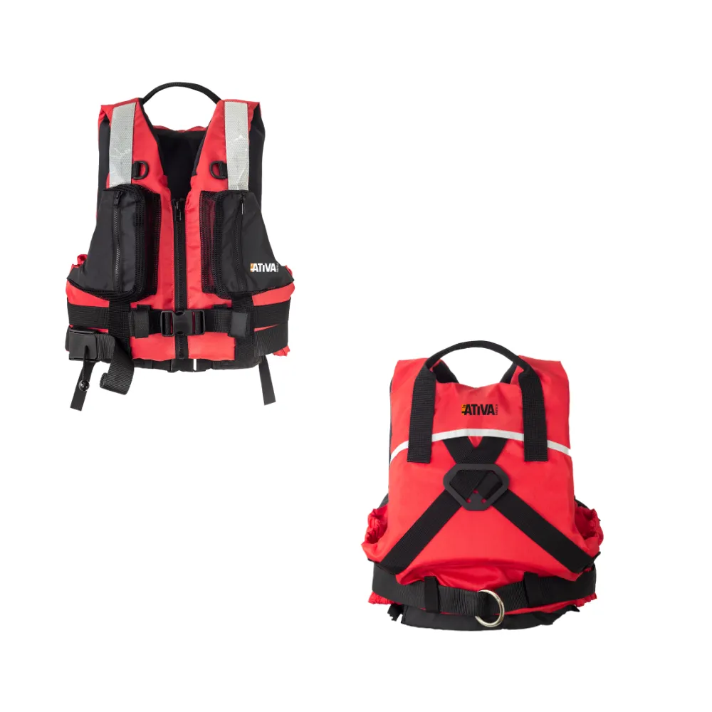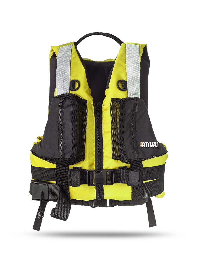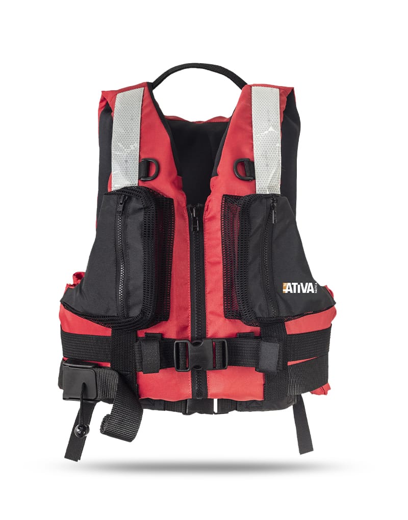 O colete salva-vidas ATIVA RESGATE com ISCA VIVA, foi desenvolvido e projetado para operações em águas brancas e monitoramento aquático. A ISCA VIVA é composta por um fecho de soltura rápida e uma argola inox que permite que o usuário se solte com rapidez do fiel, caso esteja em uma situação de risco.