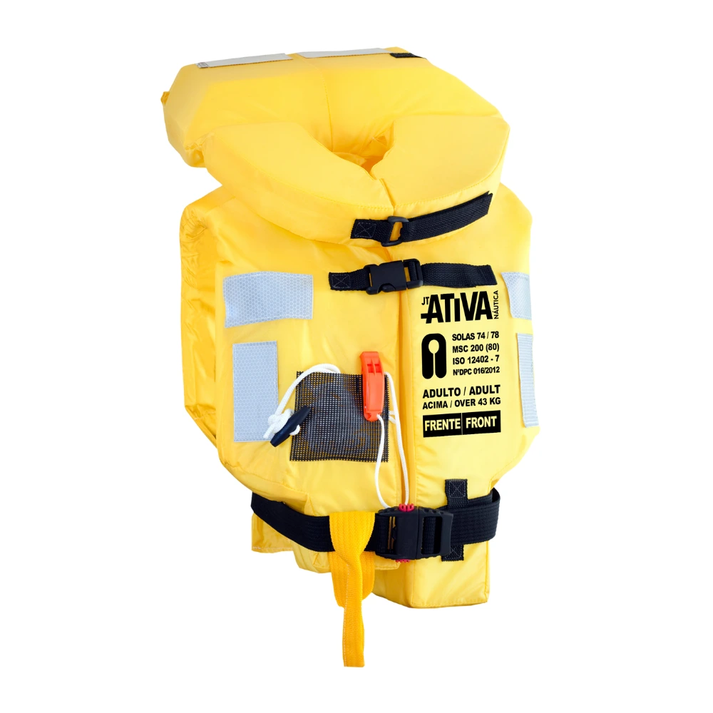 - Informações de classe e cuidados de uso na parte interna do colete;