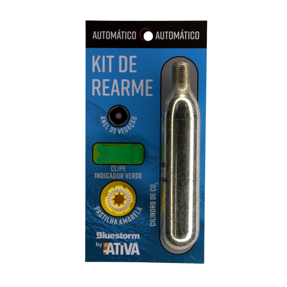 Kit rearme completo para substituição do cilindro de CO2 dos coletes infláveis de acionamento automático.
